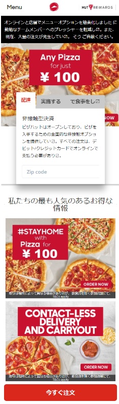 〇 ピザハットオンラインの正規URLは、「https://www.pizzahut.jp/」です。