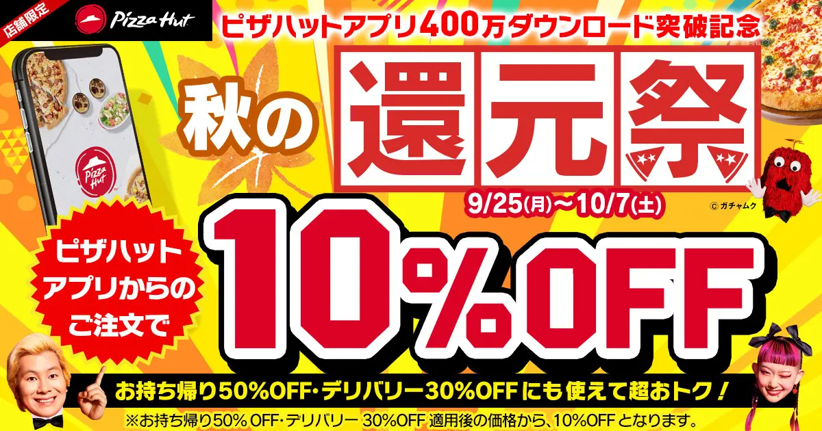 ピザハットオンラインまたは、ピザハットアプリ事前予約5%OFFキャンペーン