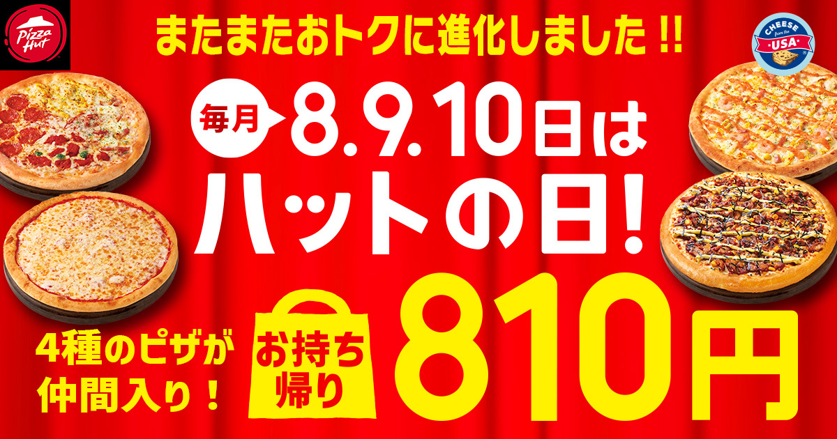 ※上記受け渡し期間にて、前日までにピザハットオンラインまたは、ピザハットアプリからご予約していただくと5%OFFになります。