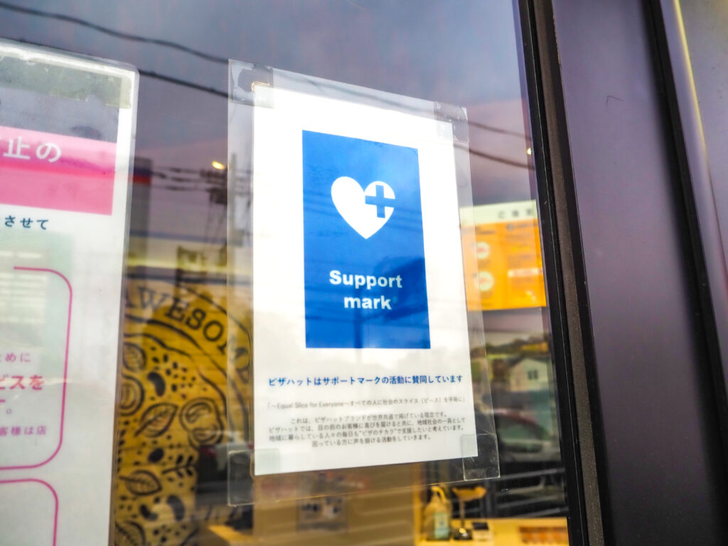 本活動は、全国約520店舗を対象に、実際の店舗に「サポートマーク」のステッカー貼り付けを行なっていくものになります。この活動を通し、目の前のお客様に喜びを届けるだけではなく、「ピザのチカラ」で明るい社会の実現に貢献してまいります。
