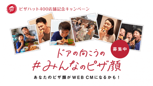 この度の400店舗出店を記念して、2018年9月20日(木)より、「ドアの向こうの#みんなのピザ顔」と題し、ピザハットのピザを楽しんでいるお客様のおいしいピザ顔写真・動画投稿キャンペーンを実施します。