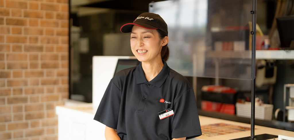 ピザハットの女性店長はまだ多くはありませんが、これまで周りの方々に助けてもらいながら、いままでやってきました。女性だからといってひいきされたことも、邪険にされたこともなく、同等に扱ってもらっています。女性としても、働く母としても、ピザハットはとても働きやすい環境。これからも、スタッフ一人ひとりに合ったかたちでしっかり向き合い、家族のようなチームワークを育んでいきたいと思います。