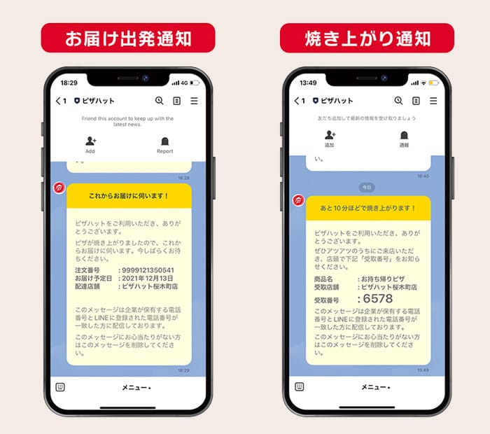 注文した商品の焼き上がり時間をLINEでお知らせするので、店舗でお待ちいただく時間を最小限に、焼きたてをお届け、お持ち帰り頂けます。